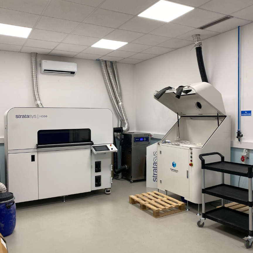 PÓLO DE FORMAÇÃOO pólo pedagógico de Leiria, localizado numa zona industrial próxima da cidade e estrategicamente posicionado a cerca de 500 metros da N1 e a aproximadamente 6 quilómetros da A1, foi renovado em 2023 e oferece espaços modernos e bem equipados para ações formativas, tanto teóricas como, especialmente, práticas. Inserido no âmbito do projeto INOV.AM, este polo, nas instalações da CODI, dispõe de uma sala para sessões teóricas e de apresentação, e seis salas dedicadas à formação prática, equipadas com tecnologias avançadas de Fabricação Aditiva, incluindo Fused Deposition Modelling (FDM), Selective Absorption Fusion (SAF), PolyJet, VAT Photopolymerization, Bound Metal Deposition (BMD), Metal Binder Jetting (MBJ) e Laser Powder Bed Fusion (LPBF). Com estas ferramentas, os formandos têm a oportunidade de uma experimentação prática que lhes proporciona uma visão integrada do processo produtivo, desde a conceção das ideias até à sua concretização.